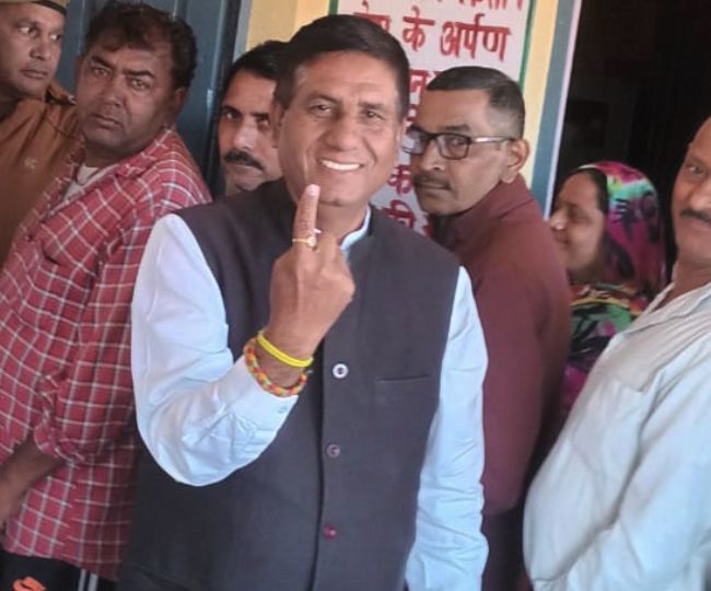 चिंतपूर्णी से भाजपा प्रत्याशी बलबीर सिंह चौधरी ने अंब के बूथ नंबर-38 वोट डाला।