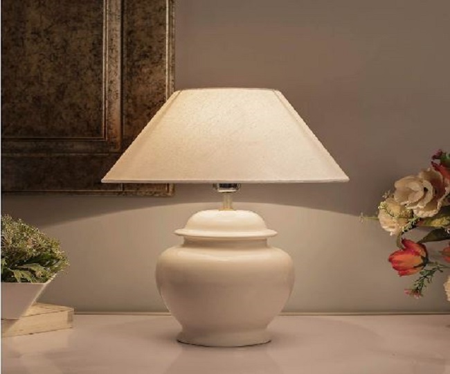 बेडरूम की साइड टेबल पर रखने के लिए यह Lamp एक बढ़िया ऑप्शन है जो आपके कमरे को रॉयल लुक देनें में मदद करता है, इसमें कॉटन का शेड दिया गया है जो रूम में शांत और हल्की रौशनी क्रिएट करता है।