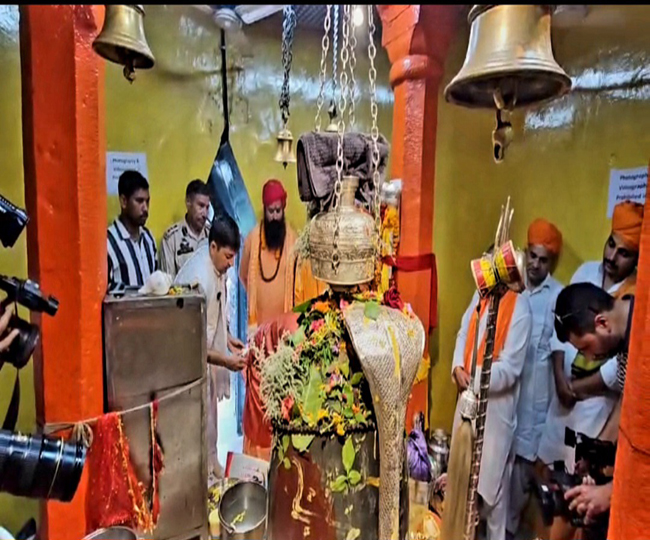 महंत दीपेंद्र गिरी ने वैदिक मंत्रोच्चारण के बीच पवित्र छड़ी मुबारक संग भगवान शिव की पूजा अर्चना की। शिवलिग का जलाभिषेक किया और धार्मिक अनुष्ठान के बाद छड़ी मुबारक को लेकर दशनामी अखाड़ा लौट आए।