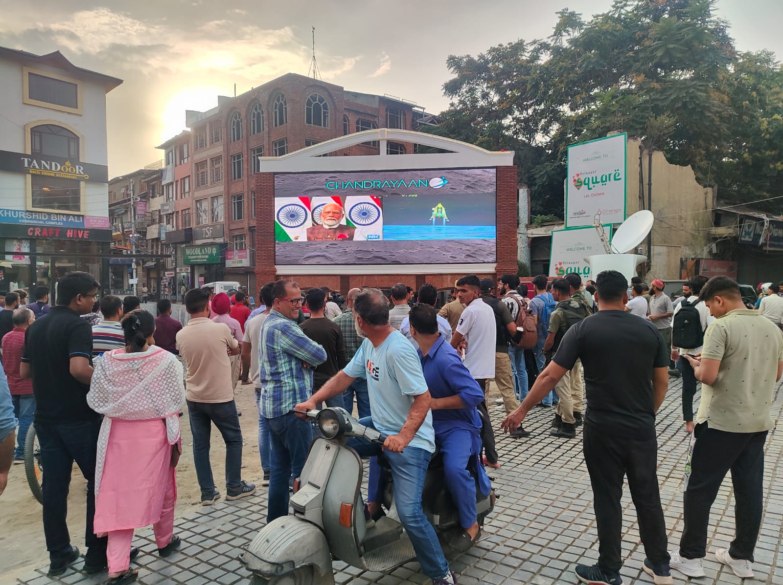 चंद्रयान की चांद पर सफल लैंडिंग के बाद बच्चों और शिक्षा विभाग के अधिकारियों ने भी वंदे मातरम के नारे लगाए। जम्मू कश्मीर के लालचौक पर चंद्रयान की लैंडिंग का सीधा प्रसारण हुआ।