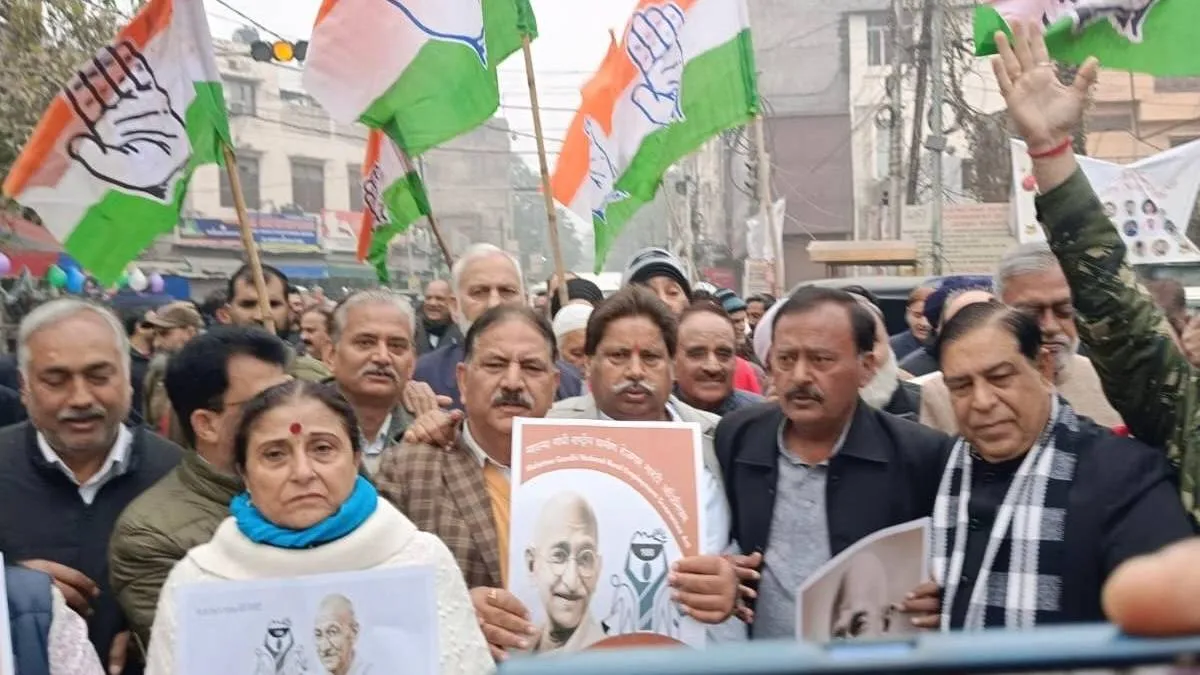 राज्य ब्यूरो, जम्मू। महात्मा गांधी राष्ट्रीय ग्रामीण रोजगार गारंटी अधिनियम से महात्मा गांधी का नाम हटाने और कानून को समाप्त कर नया कानून लाने के केंद्र सरकार के फैसले के विरोध में रविवार को जम्मू व श्रीनगर में कांग्रेस ने प्रदर्शन किया। जम्मू में प्रदर्शन का नेतृत्व अखिल भारतीय कांग्रेस कमेटी के राष्ट्रीय प्रवक्ता सुरिंदर सिंह राजपूत ने किया।