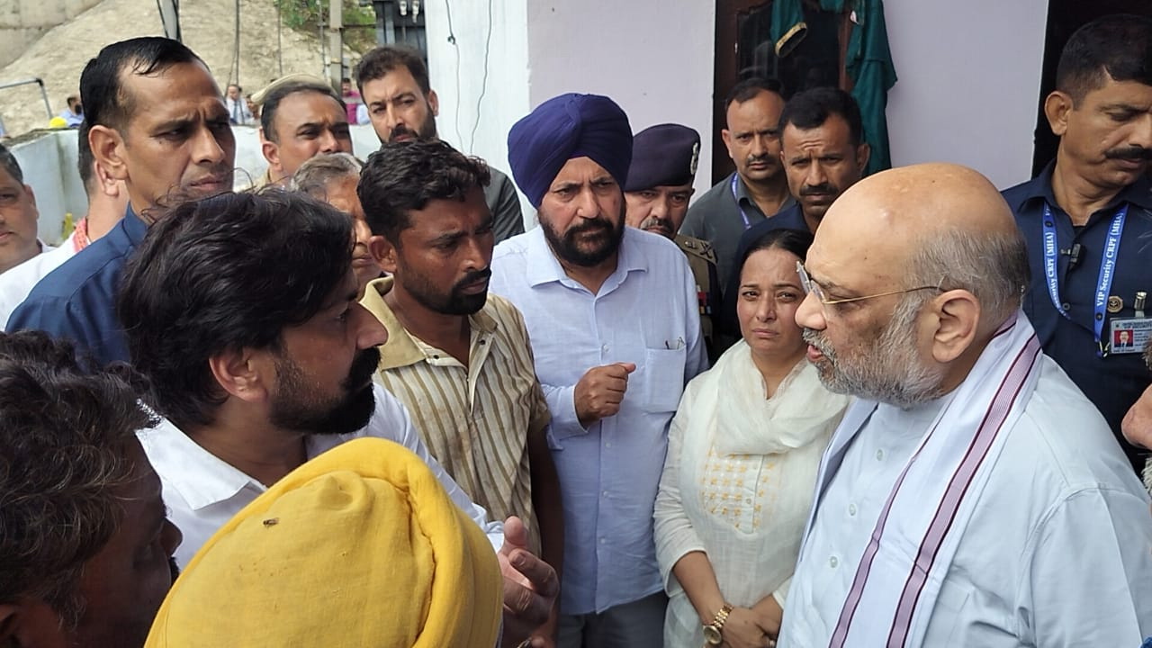 सुबह साढ़े ग्यारह बजे के करीब मंगू चक पहुंचे अमित शाह को प्रदेश प्रशासन के अधिकारियों ने बाढ़ से उपजे हालात व लोगों को तत्काल राहत देने के लिए किए जा रहे कायाें के बारे में बताया।