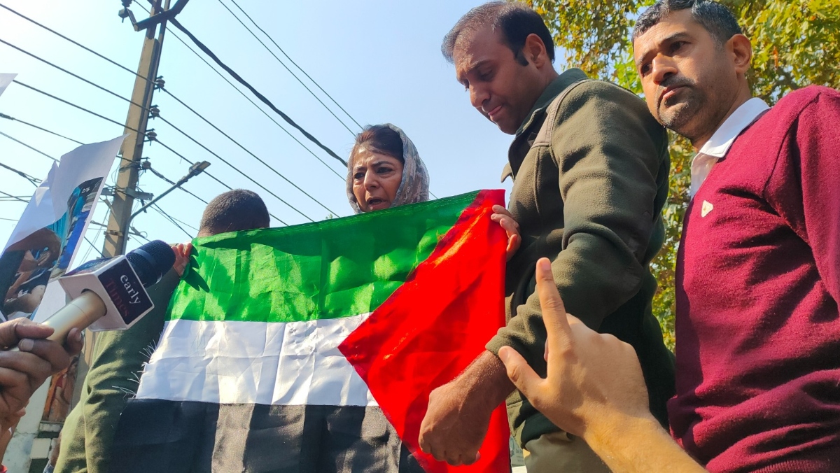 उन्होंने श्रीनगर में फलस्तीन के समर्थन में विरोध-प्रदर्शन किया। पीडीपी अध्यक्ष (PDP Chief) फलस्तीन का झंडा हाथों में लिए सड़कों पर प्रदर्शन करती हुई नजर आईं, हालांकि उन्होंने देश का झंडा उल्टा पकड़ा हुआ था।