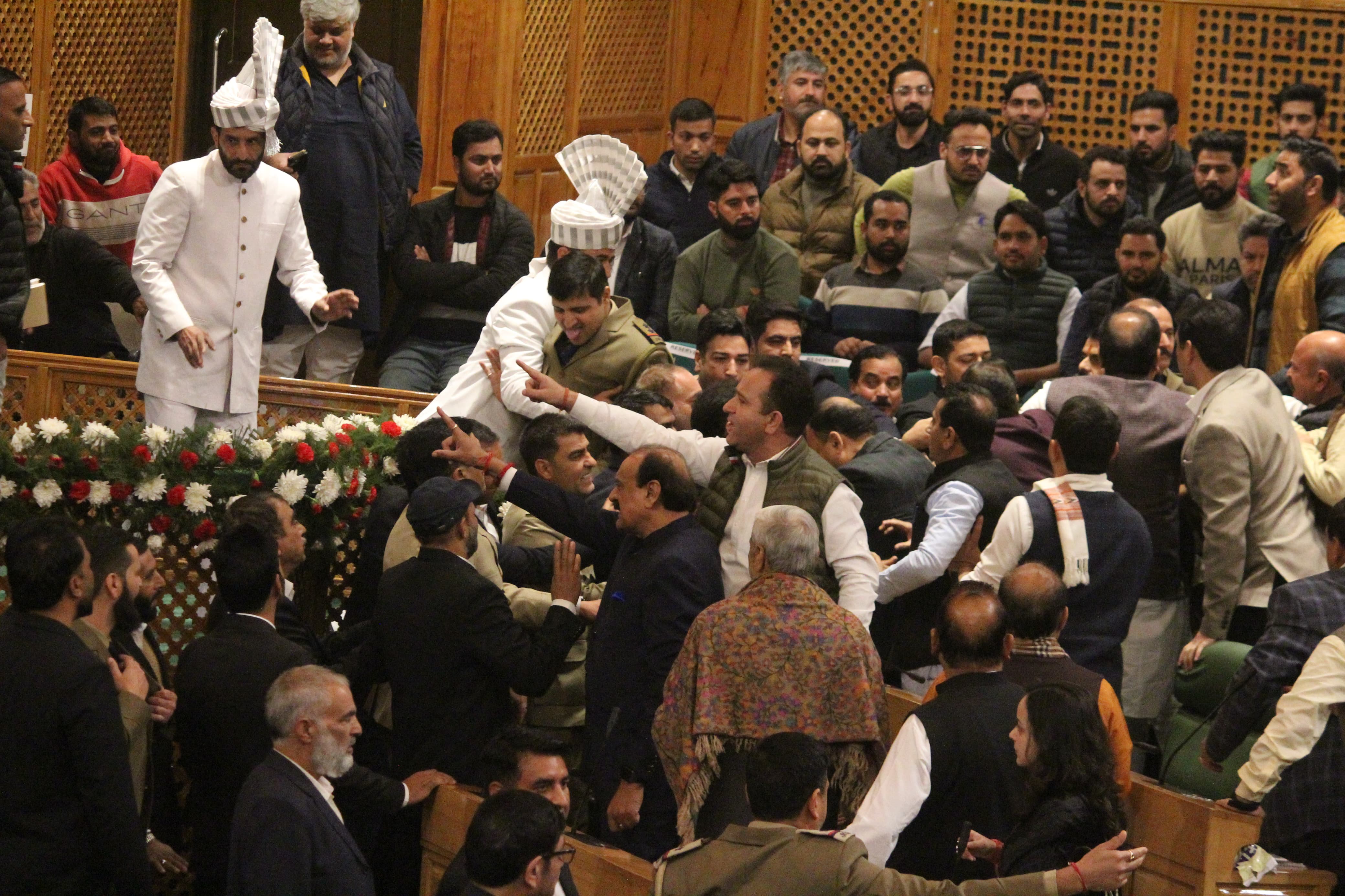 जम्मू-कश्मीर विधानसभा में हाथापाई, अनुच्छेद 370 के लहराए पोस्टर; विधायकों में मारपीट के बाद मार्शल ने संभाला मोर्चा