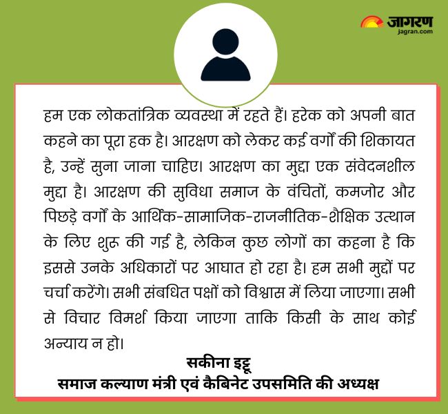 उपसमिति अपनी रिपोर्ट कब देगी, इसकी कोई समयसीमा तय नहीं की गई है। बता दें कि मुख्यमंत्री उमर अब्दुल्ला की अध्यक्षता में 18 दिन पहले हुई कैबिनेट बैठक में कैबिनेट उपसमिति के गठन का फैसला लिया गया था। इस बीच, सकीना इट्टू ने कहा कि आरक्षण नीति को लेकर सभी आपत्तियों का संज्ञान लेकर उनकी जांच की जाएगी।