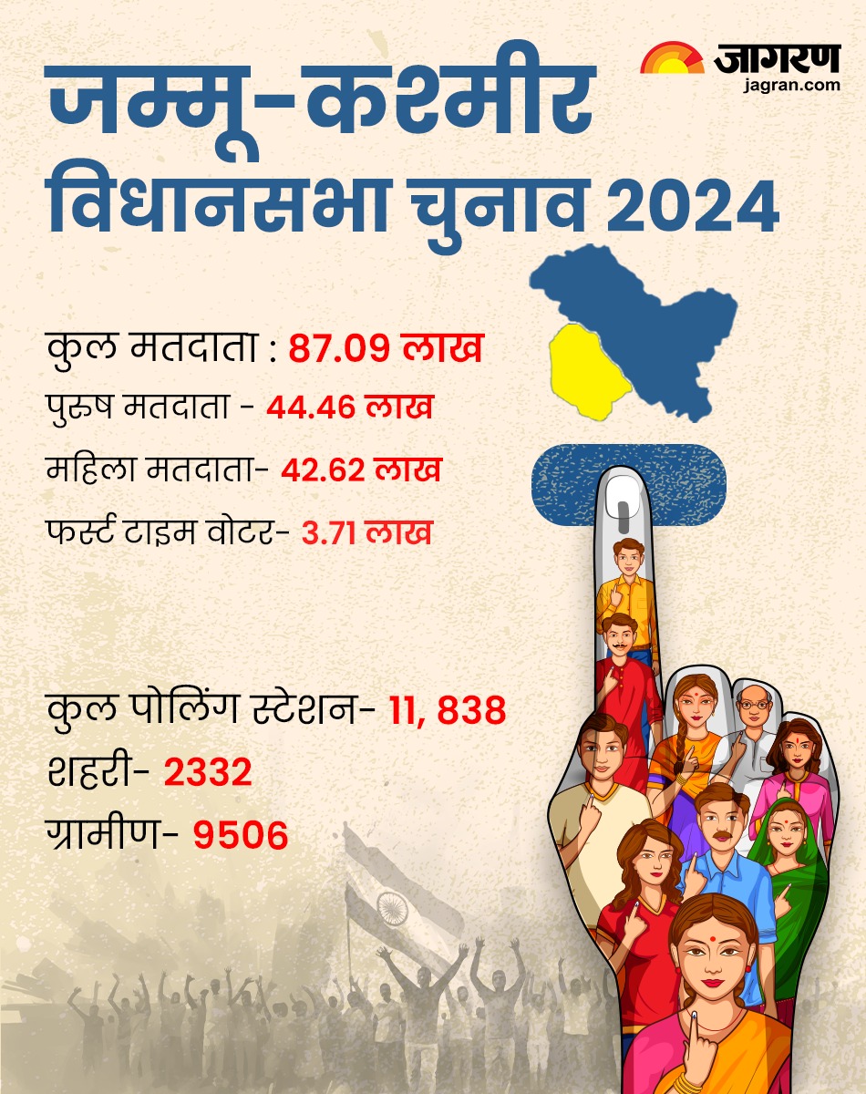 उन्होंने कहा कि केंद्रशासित प्रदेश में मतदाताओं की संख्या कुल 87.09 लाख हैं जिसमें 44.46 लाख पुरुष और 42.62 लाख महिला मतदाता हैं। जम्मू-कश्मीर में युवा मतदाताओं की संख्या 20 लाख है।