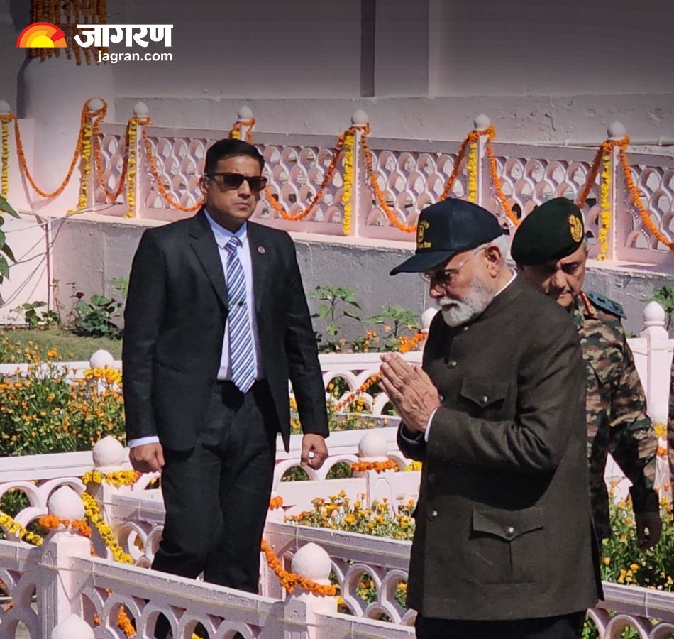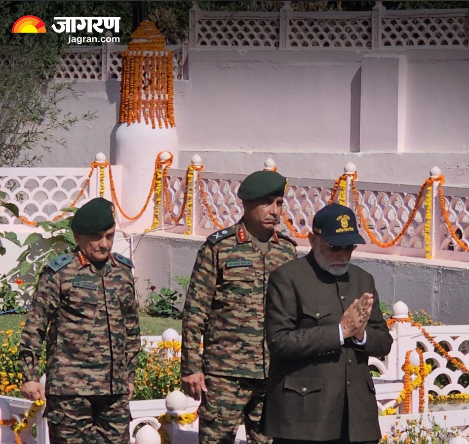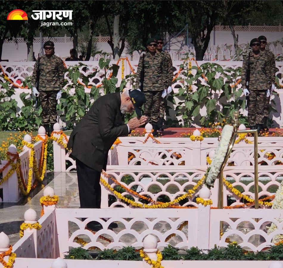 इसके साथ ही लद्दाख के द्रास में 'कारगिल वॉर मेमोरियल' में पीएम मोदी ने बलिदानियों को श्रद्धांजलि अर्पित की। प्रधानमंत्री मोदी इस दौरान सेना की कैप और काले कोट में नजर आए।