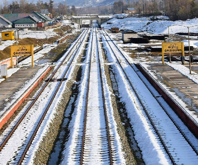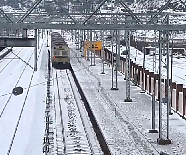 कश्मीर में बर्फ को चीरती ट्रेन... स्नोफॉल के बाद सफेद चादर से ढके रेलवे स्टेशन; तस्वीरों में देखें नजारा