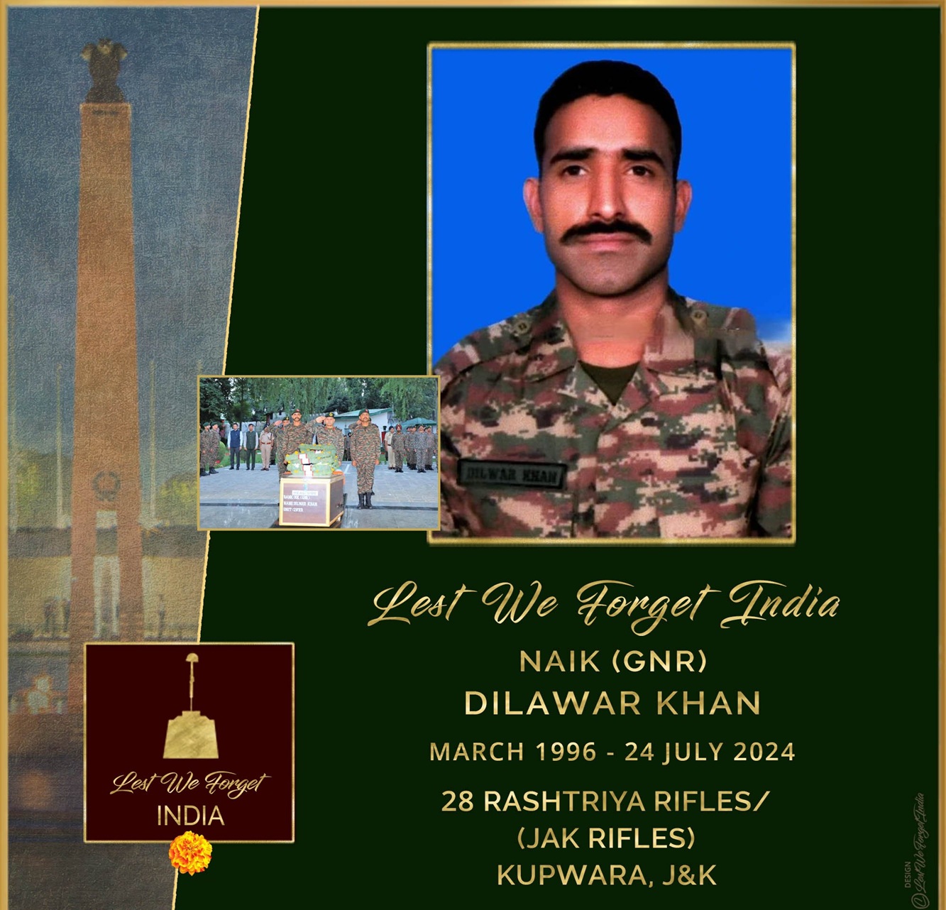सेना की 28 आरआर में नायक दिलवर खान 23 जुलाई 2024 की रात एलओसी से सटी लोलाब घाटी में नाका पार्टी के साथ तैनात थे। रात को उन्हें दो आतंकी दिखे। नाका पार्टी ने ललकारा तो आतंकियों ने फायरिंग शुरू कर दी।