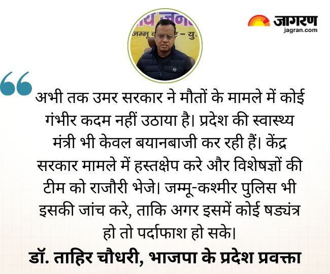 राजौरी जिले के बडाल गांव में रहस्यमयी मौतों का सिलसिला थम नहीं रहा है। अब तक 12 बच्चों समेत 15 लोगों की मौत हो चुकी है। स्वास्थ्य विभाग ने अपनी जांच म ...और पढ़ें