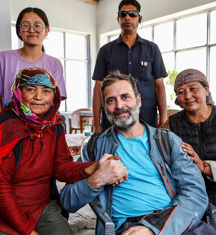 Ladakh की खूबसूरती का आनंद उठा रहे राहुल गांधी, नुब्रा वैली से पहुंचे खारदुंग ला; बाइकर्स के साथ खिंचवाई फोटो