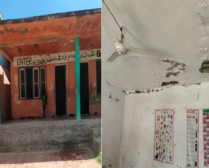 बारामुला जिले के वुसन खुई में स्थित सरकारी बॉयज मिडिल स्कूल की इमारत जर्जर है। छत टूटी है दीवारें प्लास्टर उखड़ने से खराब हैं और खिड़कियाँ-दरवाज़े भी टूटे हैं। बारिश में बच्चे छुट्टी पर रहते हैं क्योंकि छत से पानी टपकता है। अभिभावक चिंतित हैं क्योंकि 60 साल पुरानी इमारत कभी भी गिर सकती है।