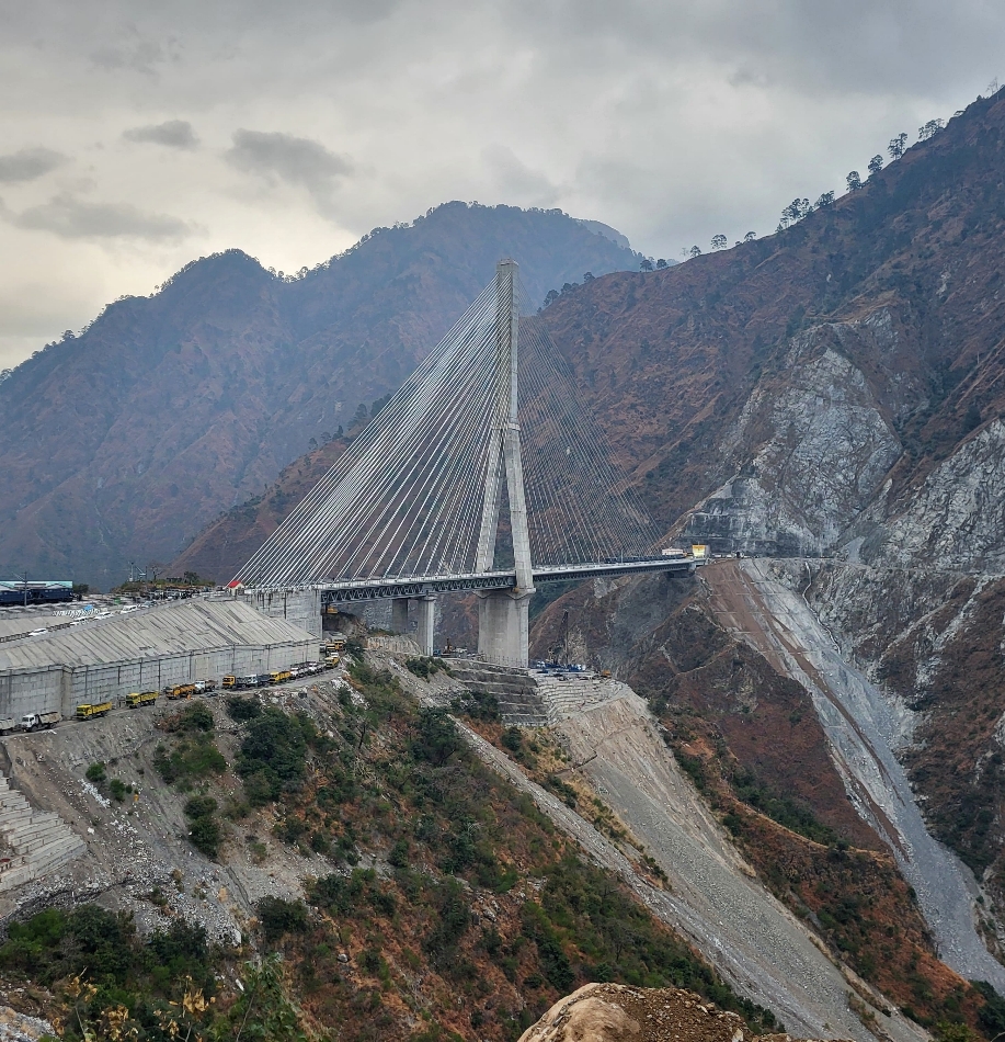 फोटो: अंजी खड्ड पर बने देश के पहले केवल स्टे ब्रिज साइट का नजाराl जागरण