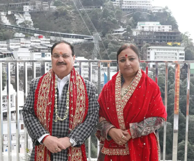 फोटो कैप्शन: जेपी नड्डा व उनकी धर्म पत्नी मल्लिका नड्डा