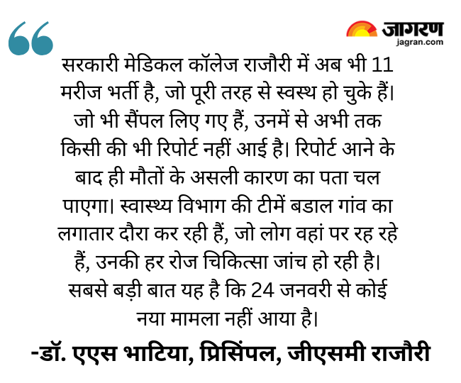 राजौरी के बडाल गांव में दो महीने में 17 लोगों की मौत हो गई है लेकिन मौतों का कारण अभी तक पता नहीं चल पाया है। देशभर के विभिन्न चिकित्सा संस्थानों के विशेषज्ञों ने गांव का दौरा किया और सैंपल लिए लेकिन कोई भी रिपोर्ट सार्वजनिक नहीं की गई है। अब बुद्धल विधानसभा क्षेत्र के विधायक जावेद इकबाल चौधरी ने सीबीआई जांच की मांग की है।