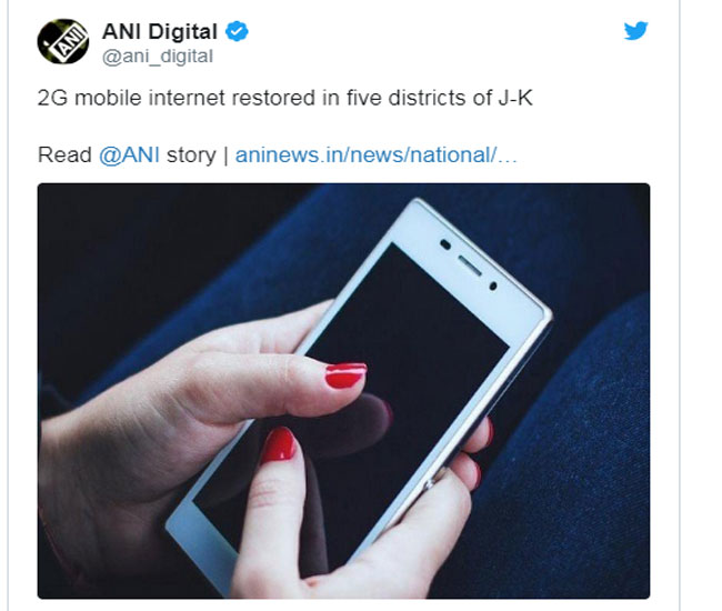 जम्मू-कश्मीर में हालात सामान्य होने लगे हैं। जम्मू में 4 अगस्त से बंद पड़ी इंटरनेट सेवा को बहाल कर दिया गया है। हालांकि, फिलहाल जम्मू में उपभोक्ता सिर्फ 2जी सेवा का फायदा ही उठा पाएंगे। लेकिन, अब उम्मीद की जा रही है कि जल्द ही जम्मू-कश्मीर के हालात सामान्य हो जाएंगे। जम्मू में इंटरनेट सेवा बहाल करने के बाद अब आज ही प्रशासन घाटी में लैंडलाइन फोन सेवा को फिर से शुरू करने जा रहा है। जम्मू-कश्मीर के पांच जिलों में 2G मोबाइल इंटरनेट बहाल हो गया है।