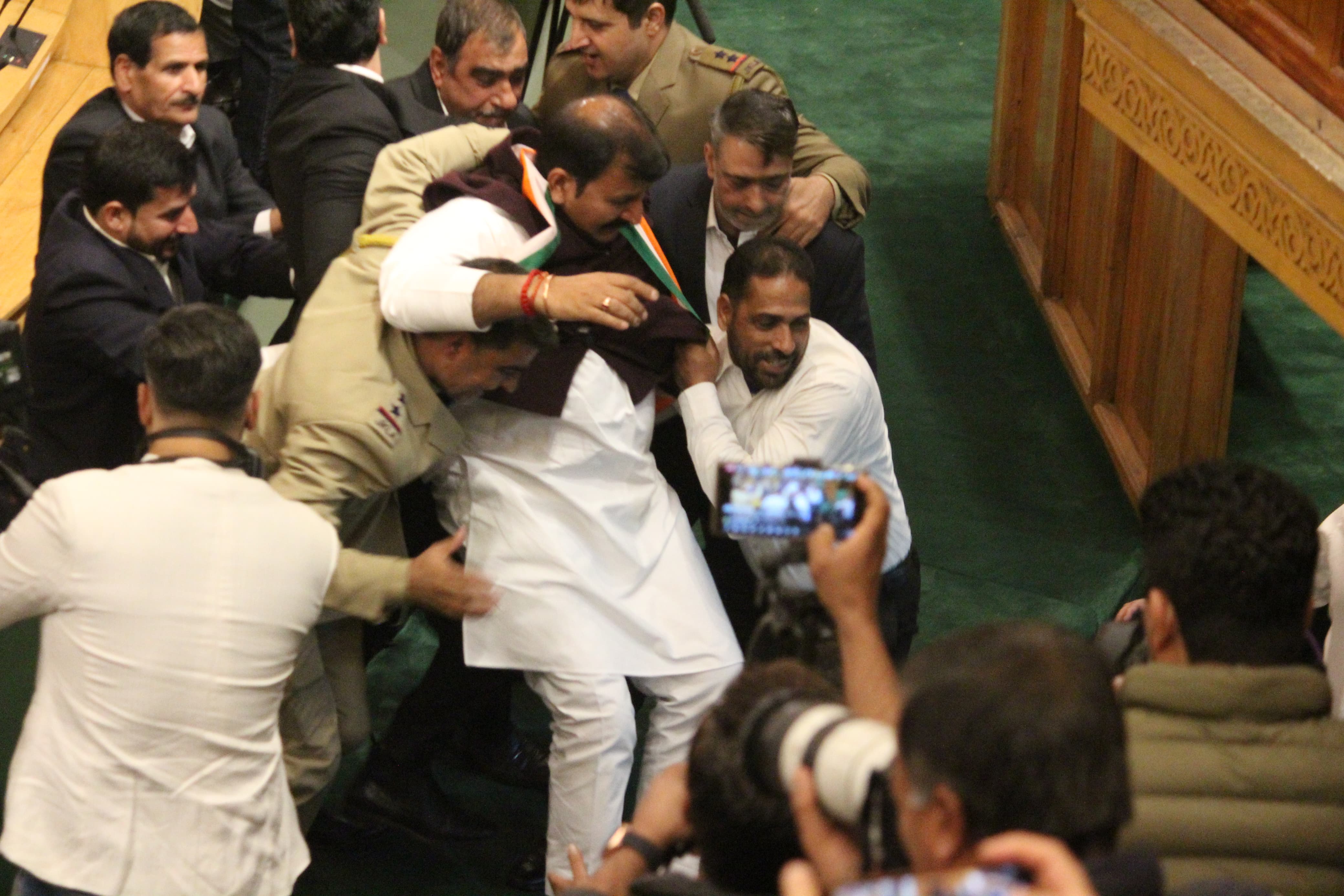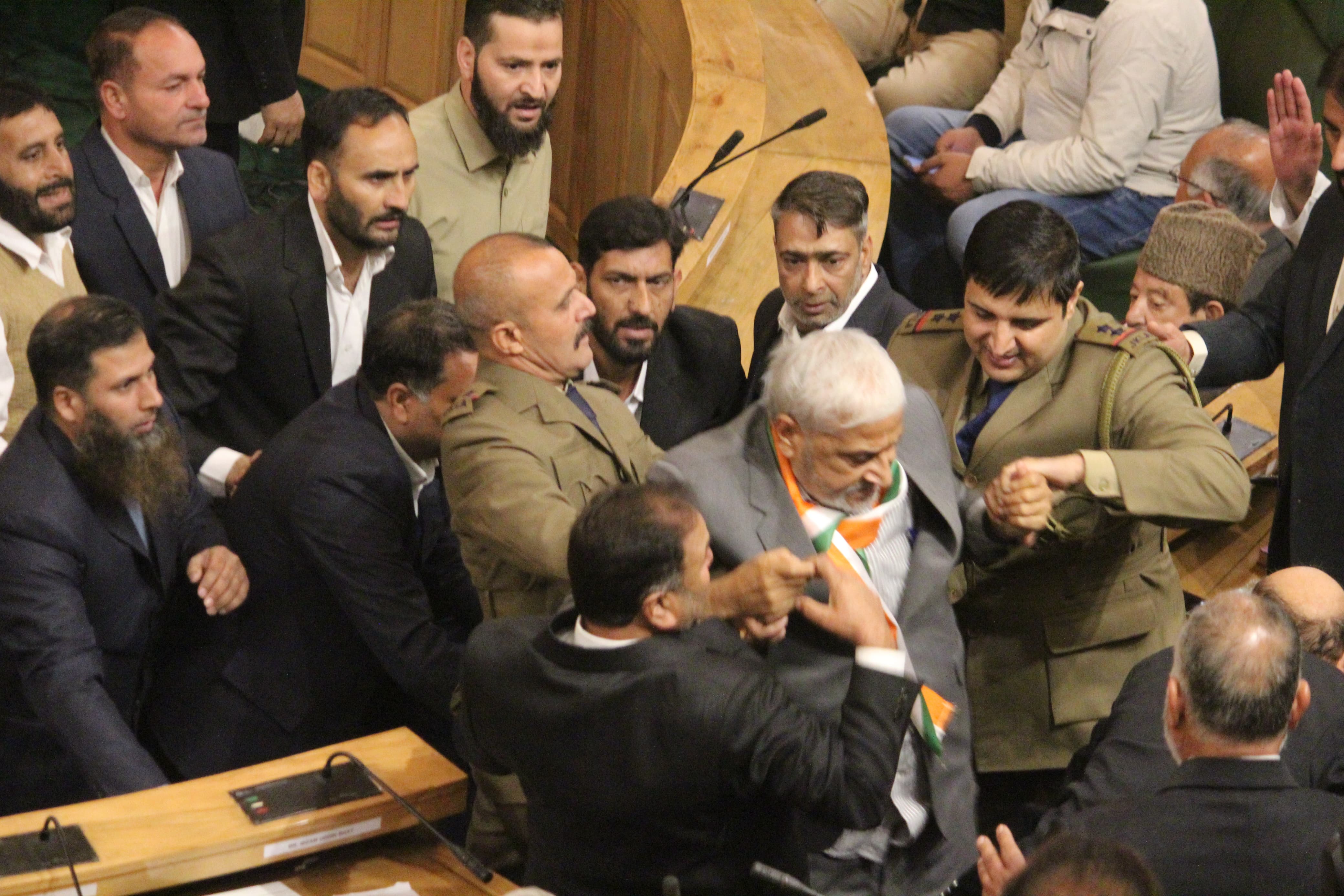 कई विधायक छक्का-मुक्की और मारपीट पर उतर आए। जिसके कारण स्पीकर को 12 विपक्षी विधायकों और लंगेट विधायक शेख खुर्शीद को बाहर निकालना पड़ा। जैसे ही सदन की कार्यवाही शुरू हुई भाजपा विधायकों ने 'पाकिस्तानी एजेंडा नहीं चलेगा' जैसे नारे लगाए।