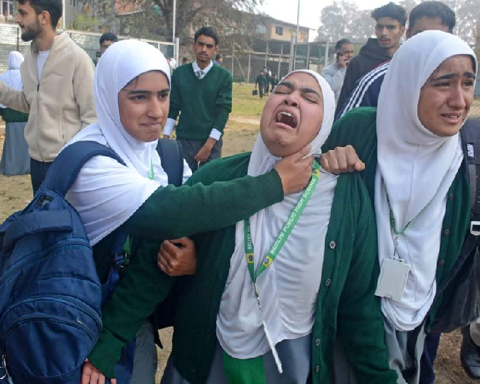 श्रीनगर के मुस्लिम पब्लिक स्कूल में आग लगने के बाद बच्चों की रोते बिलखते हुई तस्वीरें सामने आई हैं। मौके पर दमकल की कई गाड़ियां मौके पर पहुंच कर आग पर काबू पा लिया।
