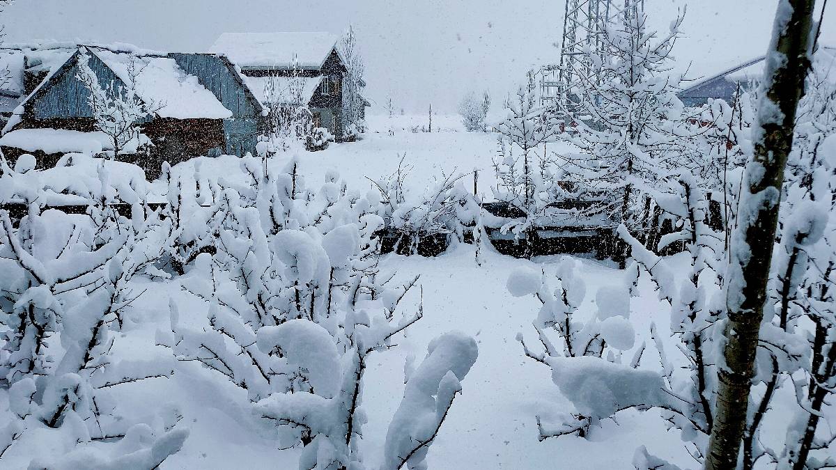 जम्मू-कश्मीर के बांडीपोरा में भारी हिमपात के बाद घर, पेड़-पौधे भी हिमाच्छादित हैं। (फोटो- एनआई)