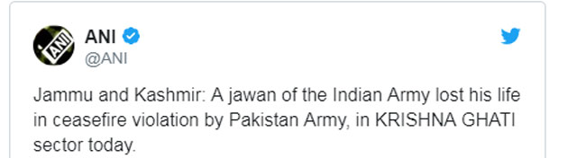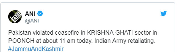 आपको बता दें कि जबसे अनुच्छेद 370 हटाया गया है तब से पाकिस्तान बौखलाया हुआ है। आए दिन सीमा पार से संघर्ष विराम का उल्लंघन कर रहा है। रक्षा प्रवक्ता ने न्यूज एजेंसी को बताया कि सीमा के पास कृष्णा घाटी सेक्टर में सुबह करीब 11 बजे सीमा पार से गोलीबारी की गई। भारतीय सेना ने इसका मुंह तोड़ जवाब दिया।