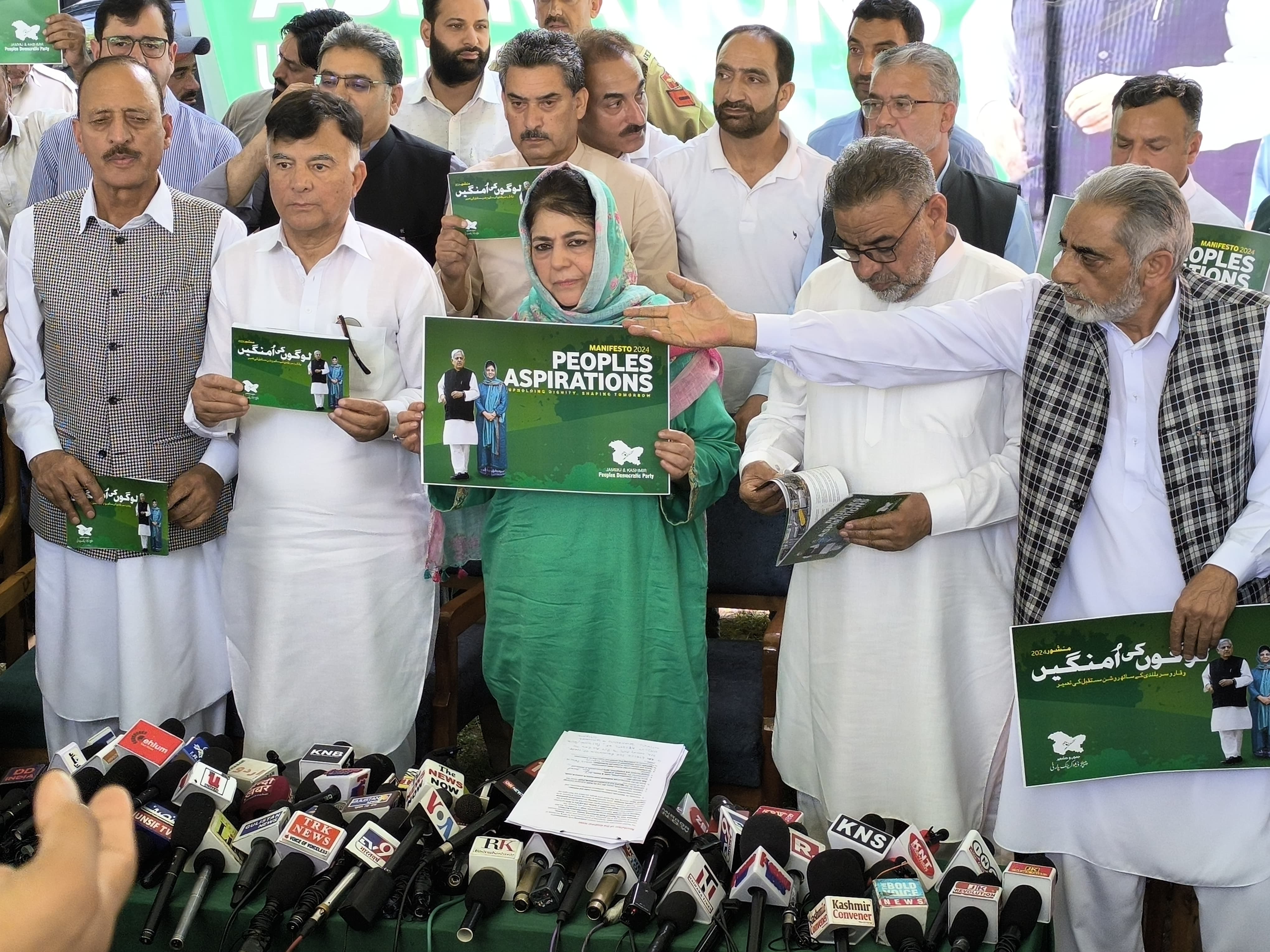 जम्मू- कश्मीर विधानसभा चुनाव 2024 को लेकर पीपुल्स डेमोक्रेटिक पार्टी ने अपना घोषणा पत्र जारी कर दिया है। पीडीपी प्रमुख महबूबा मुफ्ती ने घोषणा पत्र जारी करते हुए कहा कि वो मुफ्त बिजली के साथ ही पानी पर टैक्स को खत्म कर देंगे। इसके साथ ही भर्ती प्रक्रियाओं में भी तेजी लाएंगी। जम्मू-कश्मीर में विधानसभा चुनाव तीन चरणों में होंगे।