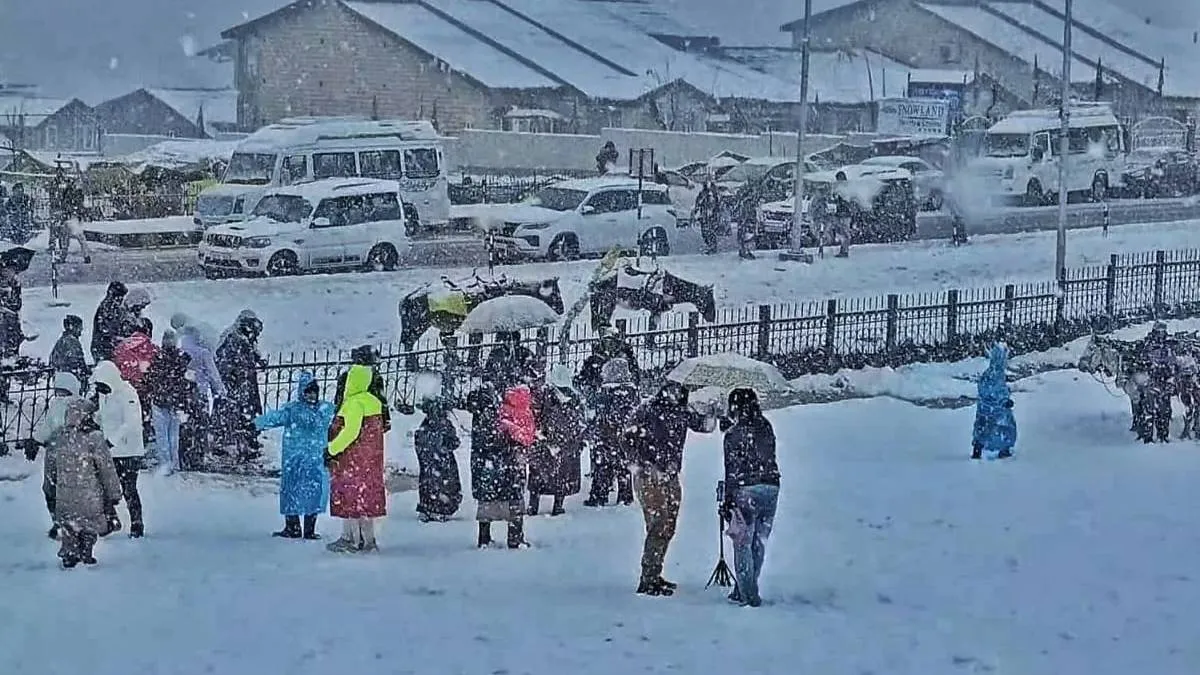 Photos: कश्मीर में स्नोफॉल... बर्फ की सफेद चादर से ढका गुलमर्ग, पर्यटकों की हुई मौज