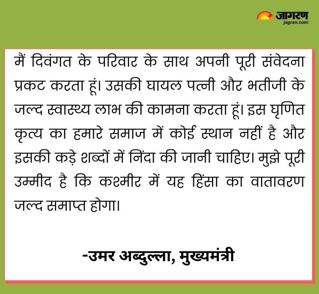 पूरा देश इस दुख की घड़ी में शोकाकुल परिवार के साथ खड़ा है। मैंने अधिकारियों को घायलों को सर्वोत्तम संभव उपचार प्रदान करने का निर्देश दिया है। उनके शीघ्र स्वस्थ होने की प्रार्थना करता हूं। मैं लोगों को आश्वस्त करता हूं कि इस कायरतापूर्ण हमले के अपराधियों को जल्द ही दंडित किया जाएगा।