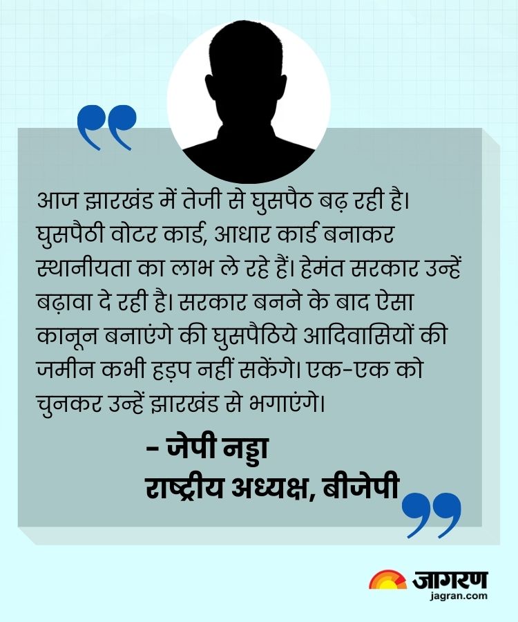 नड्डा ने कांग्रेस नेता राहुल गांधी पर निशाना साधा कि जिसे संविधान की जानकारी नहीं, वह इसकी प्रति लेकर चल रहे हैं। कांग्रेस ने संविधान बदलने का प्रयास किया। अब जबकि देश की जनता ने नकार दिया तो संविधान की दुहाई दे रहे हैं। उन्होंने झामुमो, कांग्रेस व राजद पर मुस्लिम तुष्टीकरण का आरोप लगाया।