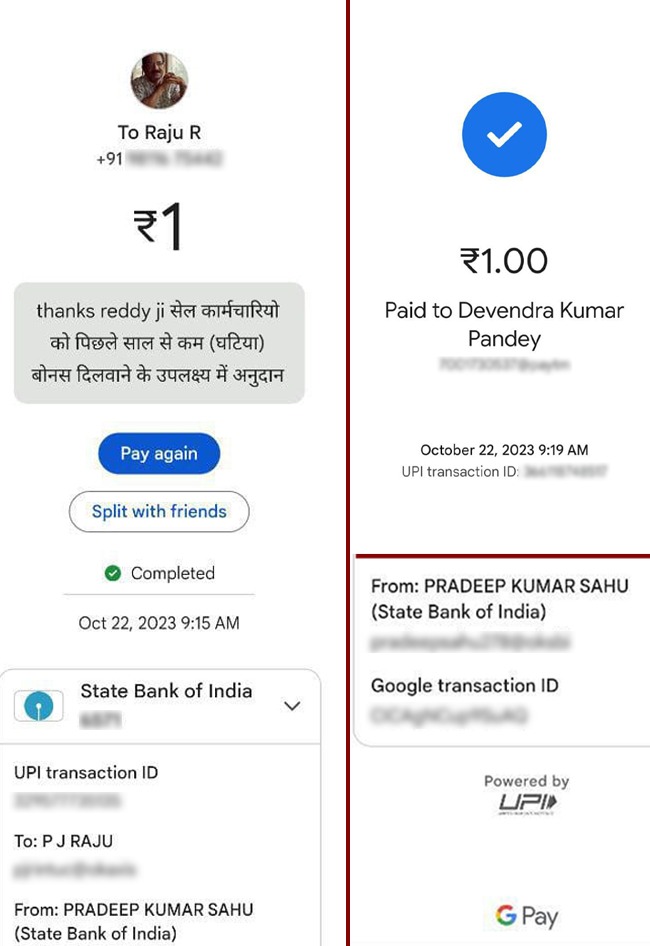 जागरण संवाददाता, बोकारो। स्टील अथॉरिटी ऑफ इंडिया लिमिटेड यानी सेल के कर्मियों ने कम बोनस मिलने पर एनजेसीएस नेताओं से कड़ी नाराजगी जताई है। इसी क्रम में उन्होंने आज एनजेसीएस के शीर्ष नेताओं के फोन पे नंबर पर एक रुपया भेजकर अपनी बोनस की राशि को साझा किया है।
