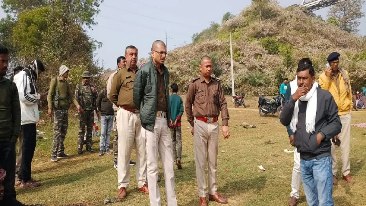 घटनास्थल का निरीक्षण करते देवघर एसडीपीओ अशोक कुमार सिंह और जसीडीह थाना प्रभारी इंस्पेक्टर दीपक कुमार व अन्य।