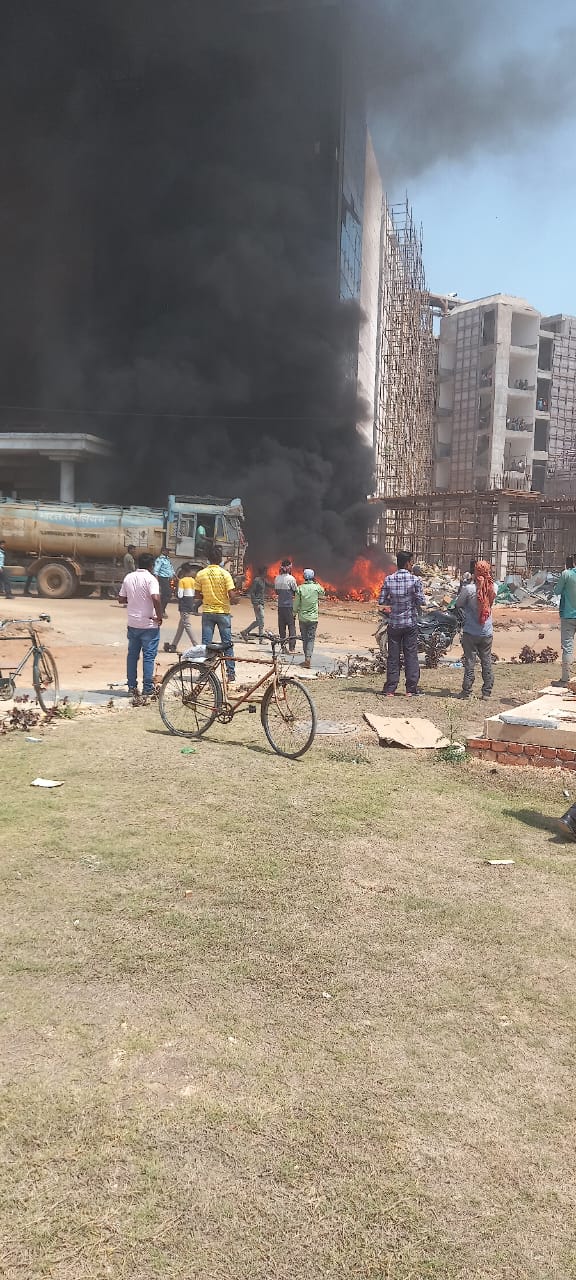 एम्स के निर्माणाधीन भवन के बाहर भड़की आग