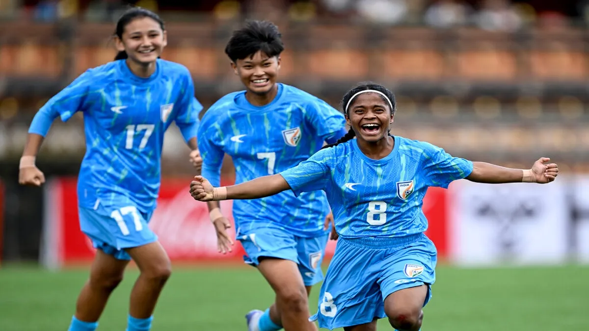 झारखंड की फुटबालर अनुष्का कुमारी (सबसे आगे)। (फाइल फोटो)