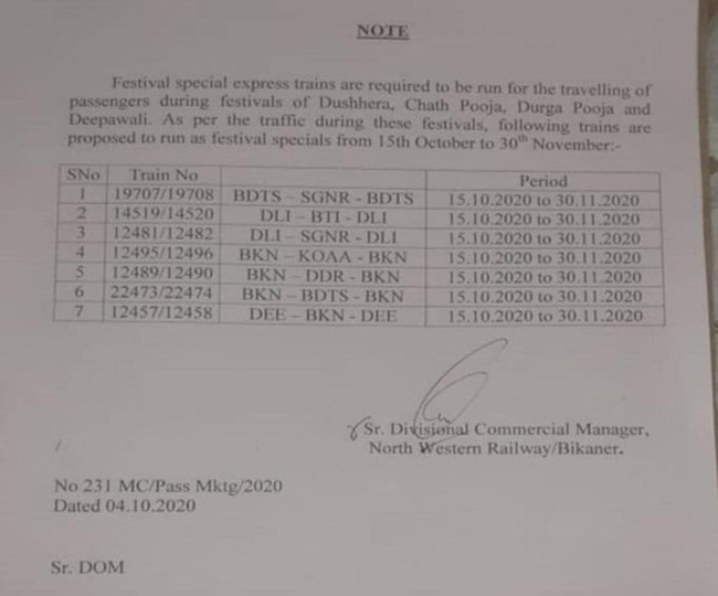 Indian Railways Pooja Special Train : 15 से चलेगी कोलकाता-बीकानेर पूजा स्पेशल, गंगा-दामोदर एक्सप्रेस को हरी झंडी का इंतजार