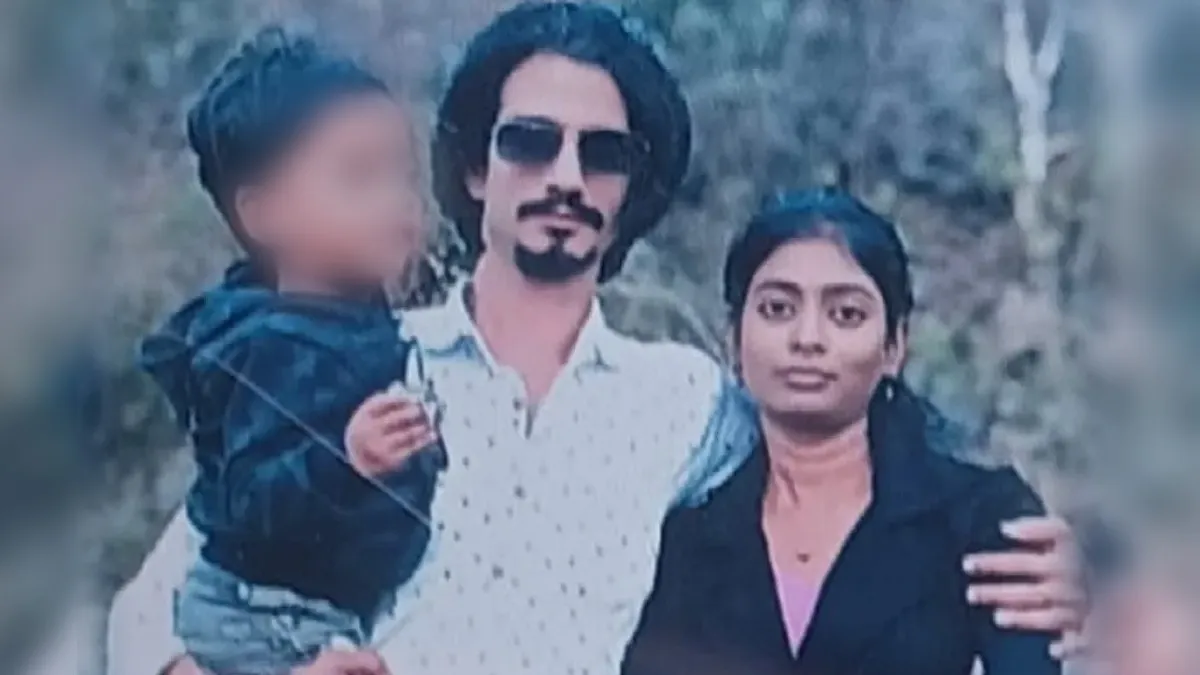 मासूम बेटे श्रेयांश के साथ कुंदन कुमार तिवारी और उसकी पत्नी रेखा देवी। (फाइल फोटो)