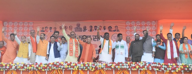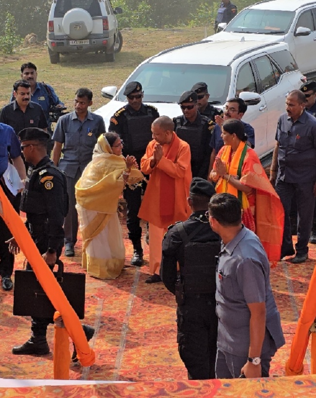 कड़ी सुरक्षा के बीच 12:49 बजे उत्तर प्रदेश के मुख्यमंत्री योगी आदित्यनाथ का हेलीकाप्टर पहुंचा। जहां भाजपा नेताओं ने हेलीपैड पर उनका स्वागत किया।