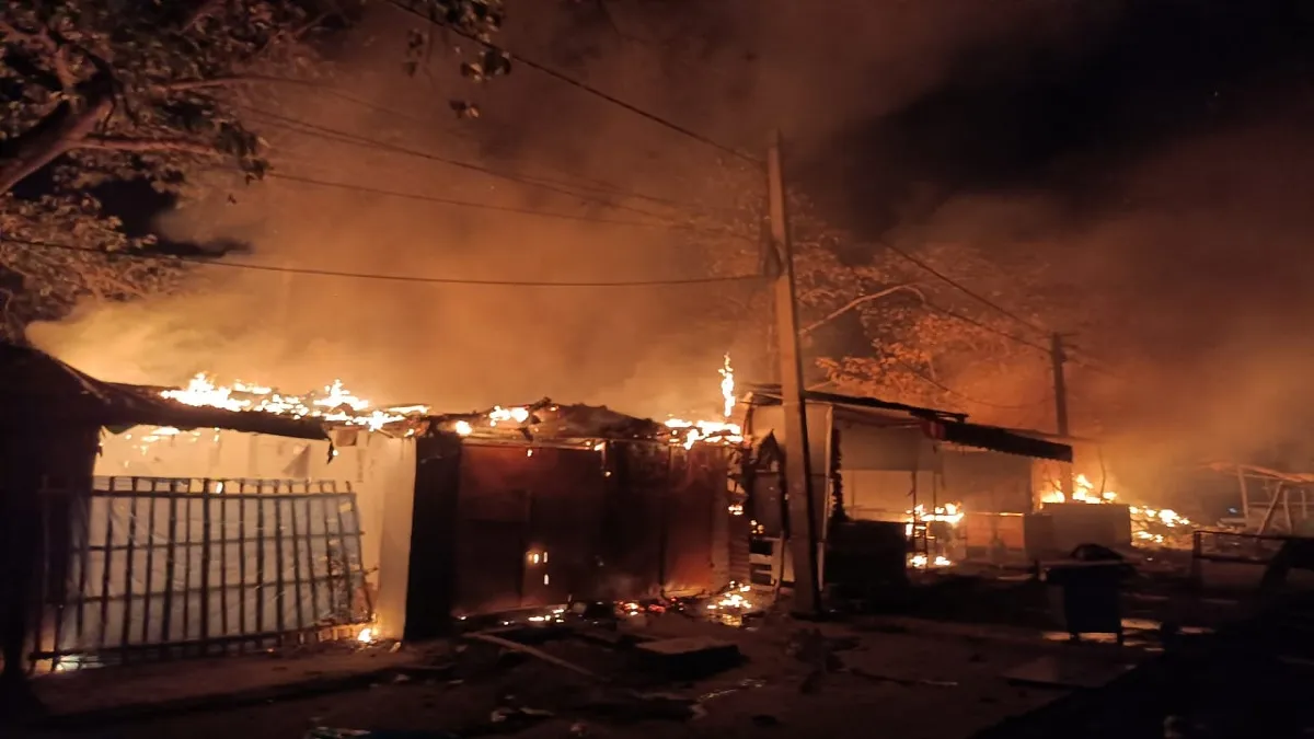 Dhanbad News: निरसा में जीटी रोड के किनारे फुटपाथ पर लगी भीषण आग, डेढ़ दर्जन से अधिक दुकानें जलकर राख