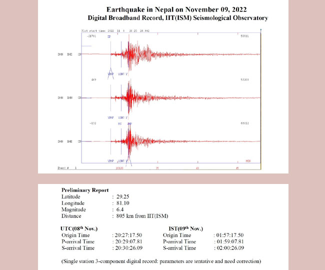 दिल्ली और नेपाल में मंगलवार की देर रात भूंकप से भारी क्षति हुई। हालांकि धनबाद स्थित आइआइटी आइएसएम ने अपने ऑब्जर्वेशन में बताया है कि इस भूकंप से पहले भी नेपाल में चार छोटे भूकंप आए लेकिन उनकी तीव्रता कम थी इसलिए उनका पता नहीं चला।