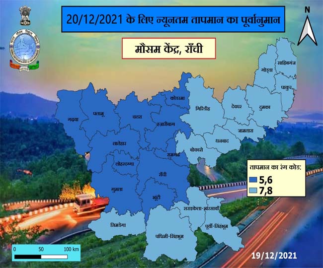 20 दिसंबर को धनबाद समेत पूरे राज्य में भीषण ठंड को लेकर मौसम विभाग ने चेतावनी भी जारी की है। धनबाद, बोकारो, गिरिडीह, जामताड़ा समेत पूरे संताल में न्यूनतम तापमान 7 से 8 डिग्री के बीच रहेगा। राजधानी रांची समेत कोडरमा, चतरा और राज्य के अन्य जिलों में न्यूनतम तापमान 5 डिग्री पर भी जा सकता है।