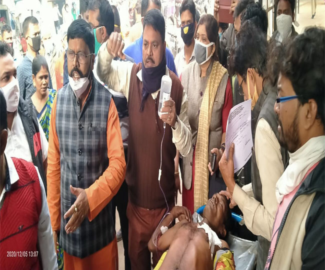 भाजपा कार्यकता को लगी गोली लगने के बाद अस्पताल में भर्ती कराते