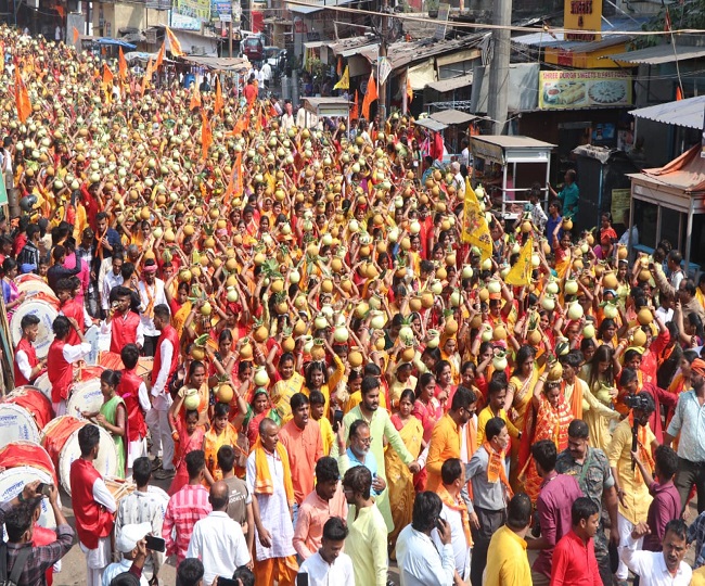 कलश यात्रा देखने के लिए जुटी भारी भीड़