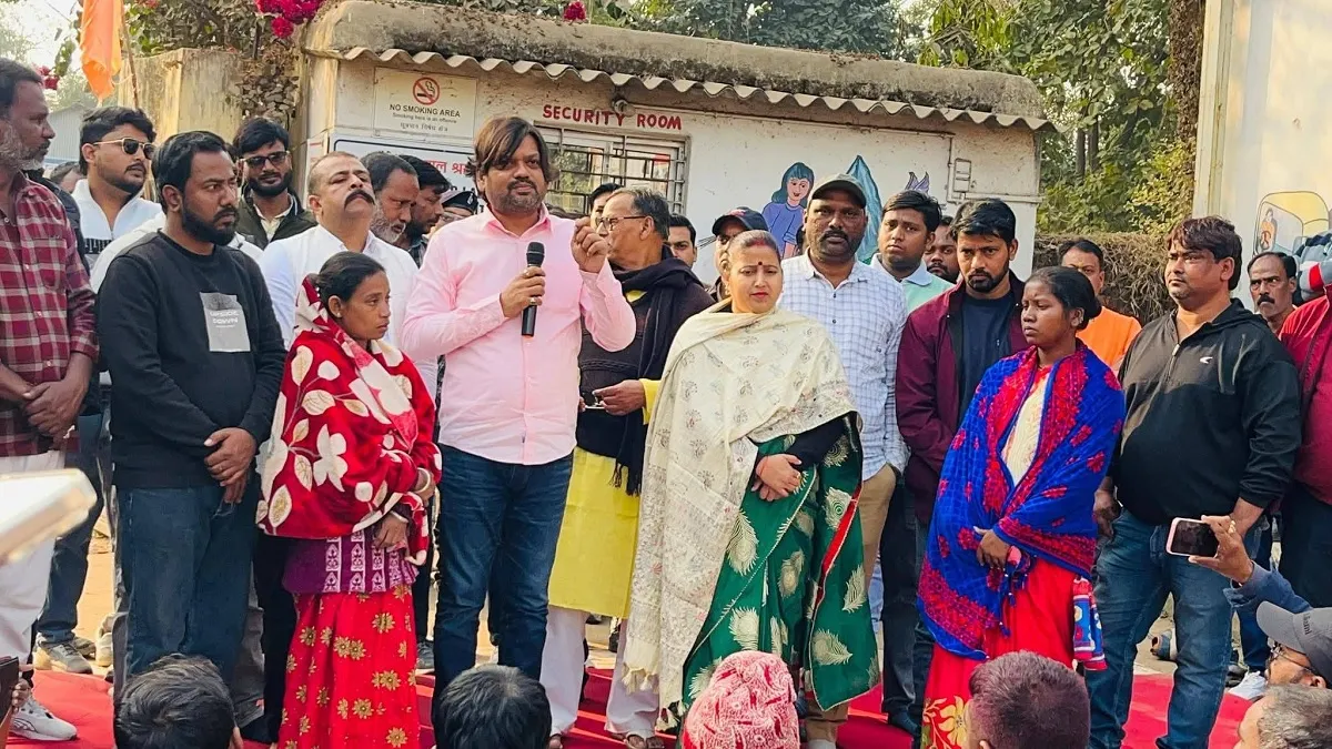 सफाई कर्मचारियों को संबोधित करते संजीव सिंह और साथ में विधायक रागिनी सिंह।