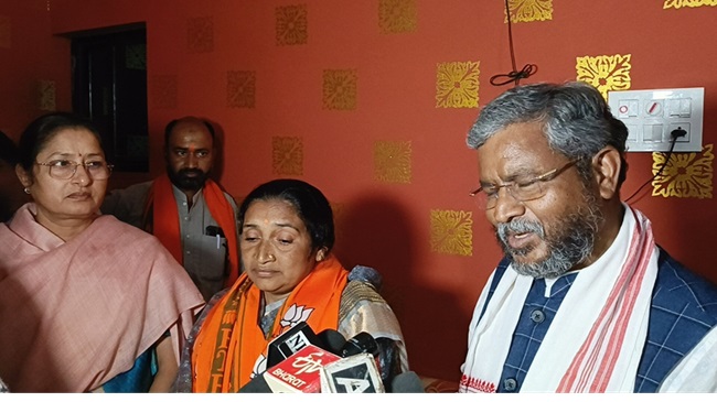 संवाद सूत्र, धनवार (गिरिडीह)। Jharkhand Vidhan Sabha Chunav 2024: झारखंड में दूसरे चरण के मतदान के ठीक पहले झारखंड मुक्ति मोर्चा (झामुमो) को जोरदार झटका लगा है। दरअसल, जमुआ विधानसभा क्षेत्र से विधायक रहे बलदेव हाजरा की पुत्रवधु गीता हाजरा सैकड़ो समर्थकों के साथ धनवार बाजार स्थित पप्पू साव के आवास पर बाबूलाल मरांडी व केंद्रीय मंत्री अन्नपूर्णा देवी की उपस्थिति में भाजपा में शामिल हुई।