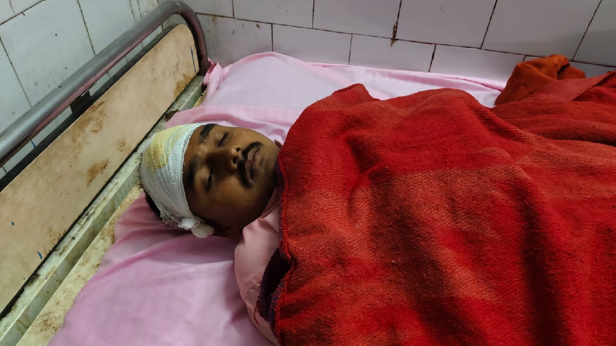 शहर के बीबीसी रोड आजाद नगर में सोमवार शाम को पिटाई से घायल सदर अस्पताल में इलाजरत रोहित कुमार।