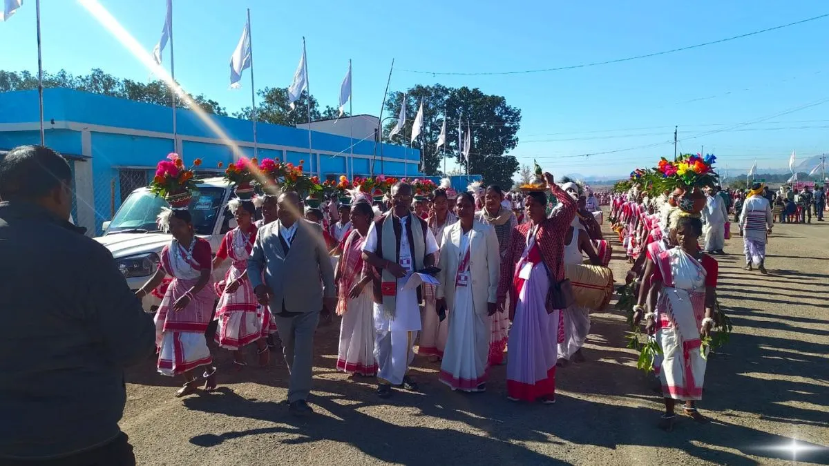 कार्यक्रम स्थल पूरे दिन जनजातीय नृत्य-गान की मधुर धुनों से गूंज रहा है। दूर-दराज़ के ग्रामीण पारंपरिक वेशभूषा में समूहों के रूप में शामिल होकर अपनी समृद्ध संस्कृति की झलक पेश कर रहे हैं।