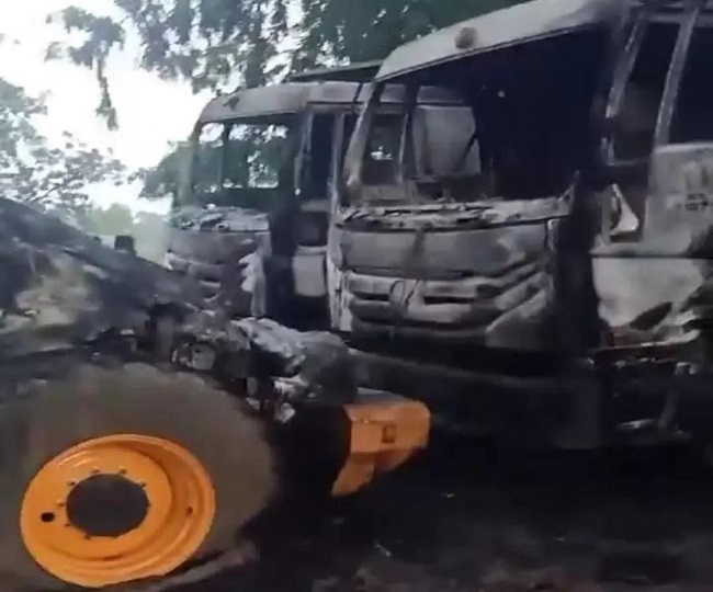 नक्सलियों का तांडव: भाकपा माओवादियों ने रेलवे लाइन कंस्ट्रक्शन साइट पर किया हमला, मजदूरों संग की मारपीट; कई वाहनों में लगाई आग