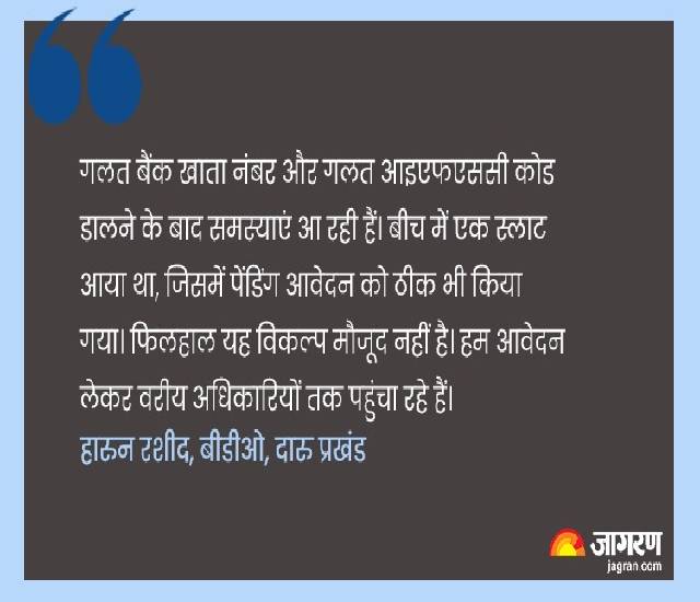 - टाटीझरिया की कुंती देवी ने कहा कि शायद मेरा खाता नंबर गलत होने की वजह से मंइयां योजना की राशि मुझे नहीं मिली। सुधार के लिए आवेदन दिया है, लेकिन अब तक नहीं हुआ है।