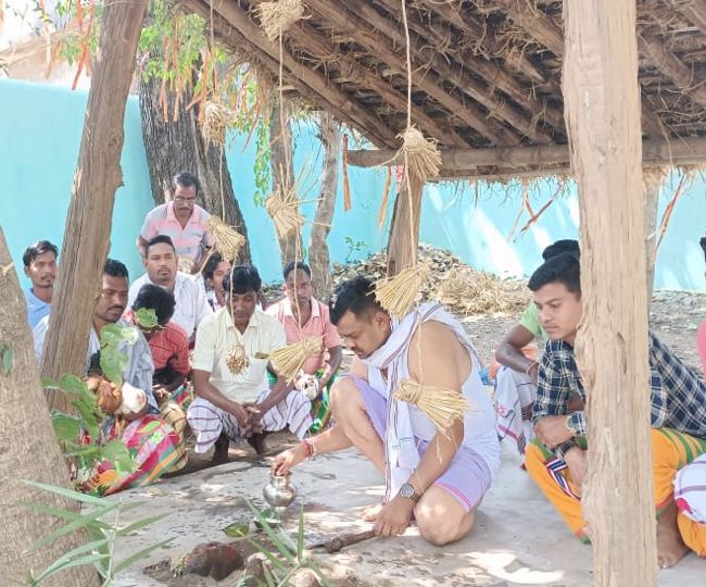 बाहा बोंगा पर्व के दौरान अनुष्ठान करते श्रद्धालु