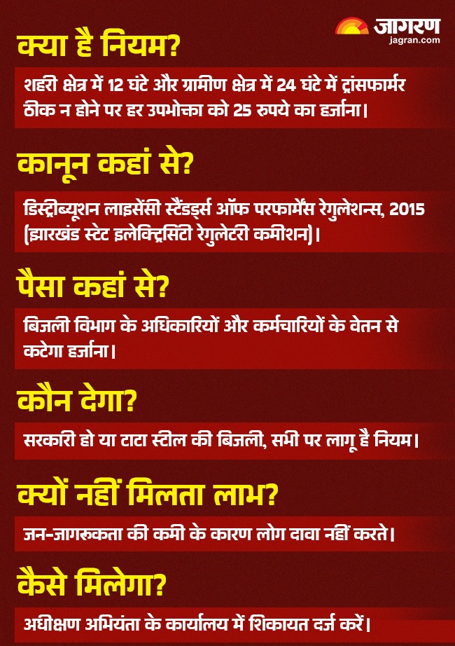 इस नियम के तहत, यदि तय समय में ट्रांसफार्मर ठीक या बदला नहीं जाता, तो प्रत्येक प्रभावित उपभोक्ता को 25 रुपये का मुआवजा मिलेगा।
