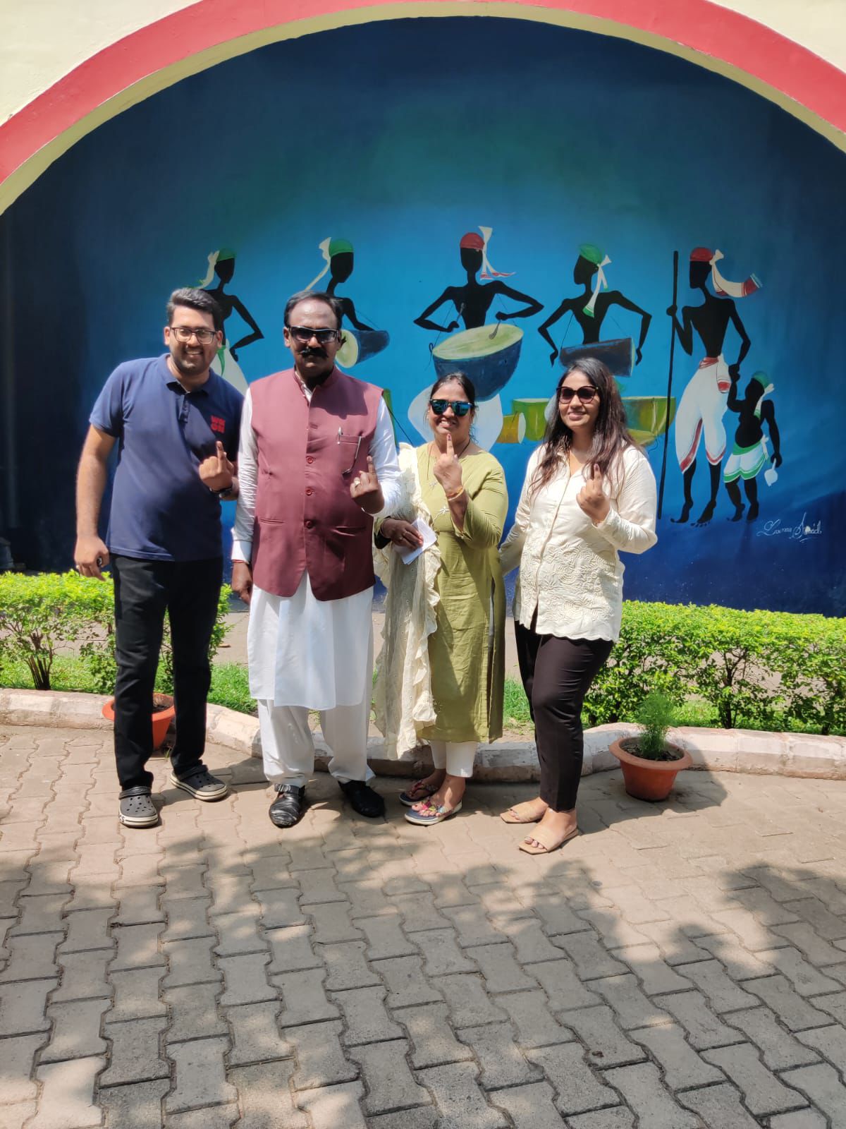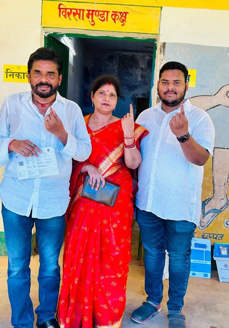 ट्रायबल कल्चर सेंटर से वोट देकर निकलते सुरेश सोंथालिया और उनका परिवार। जागरण