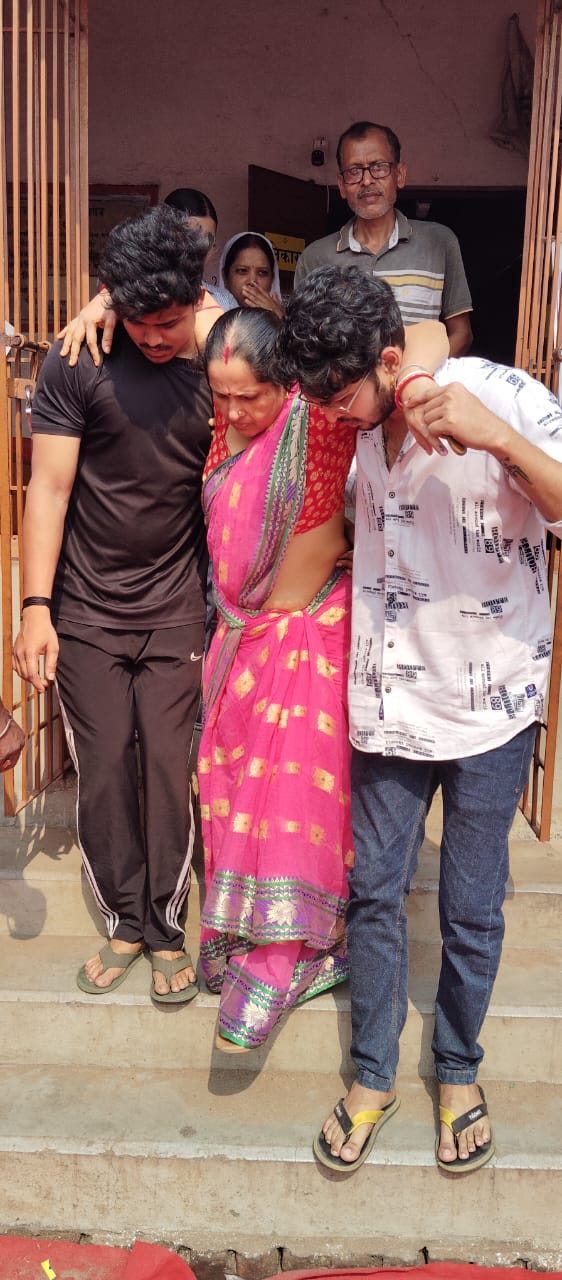 जमशेदपुर स्कूल में वोट देकर निकलती चैम्बर के पूर्व महासचिव भरत वसानी की मां 95 वर्षीय मेनाबेन